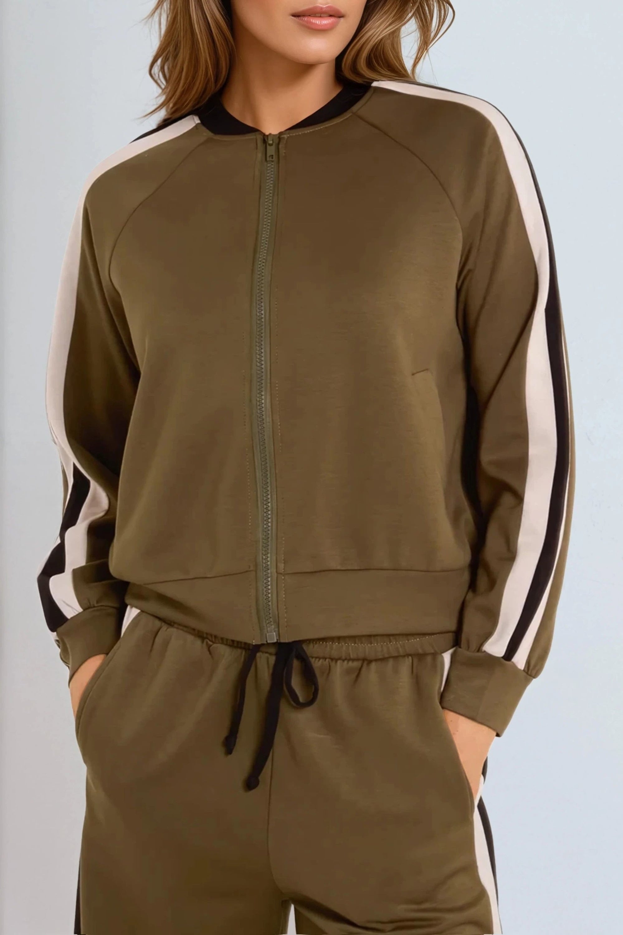 Khaki Stripe Bomber Jacket & Jogger Set